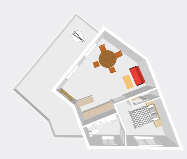 Elle offre une belle terrasse de 20m2, au soleil ou ombragée toute la journée en fonction de la saison.